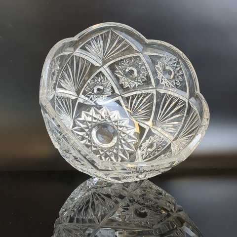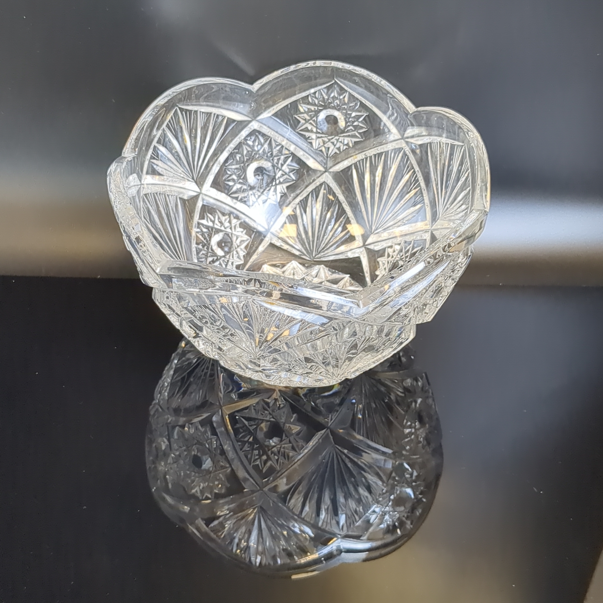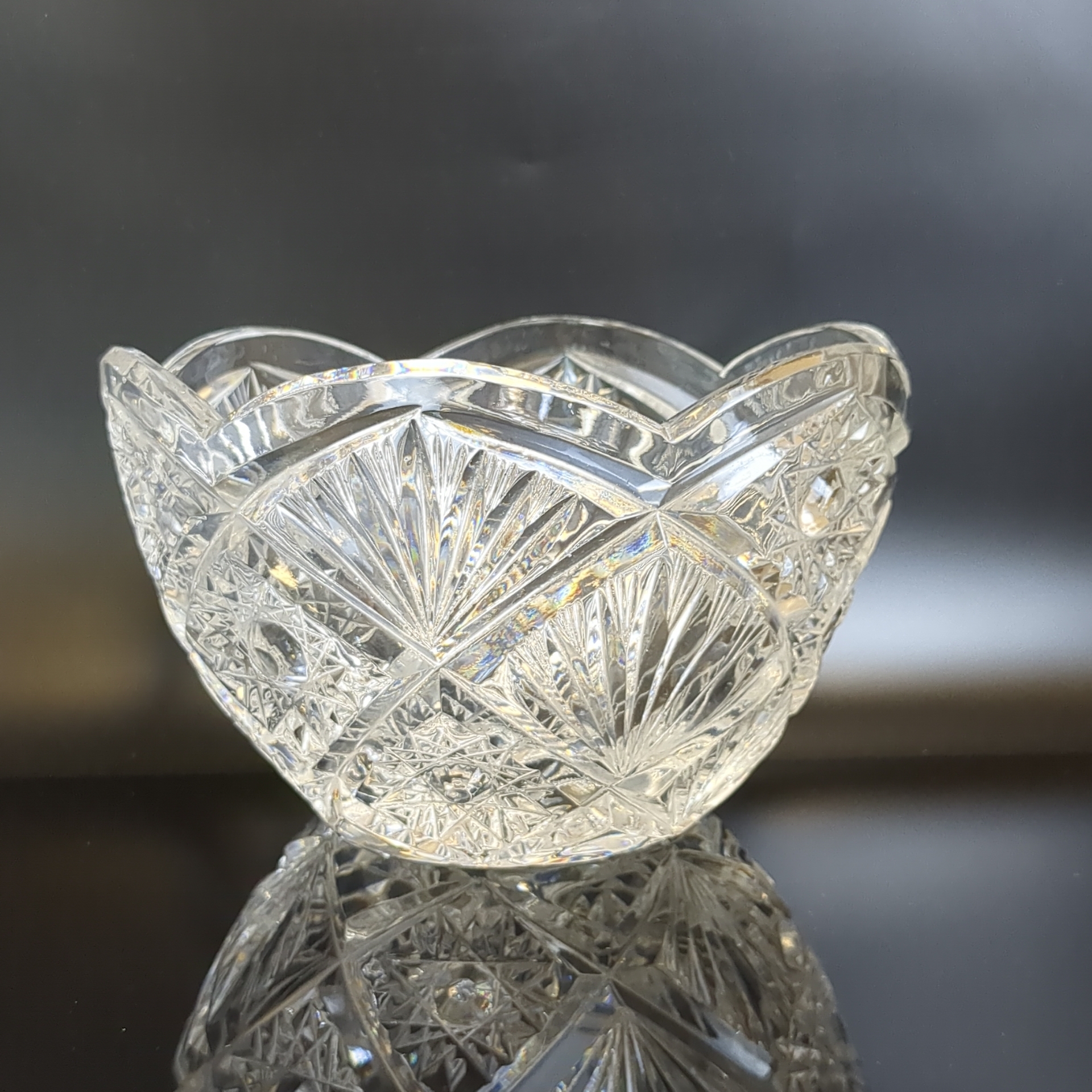 Салатник хрустальный с геометрическим узором ,алмазная грань, винтаж СССР 1970-1990 гг. Диаметр верха - 18 см, высота- 11 см. Состояние на фото