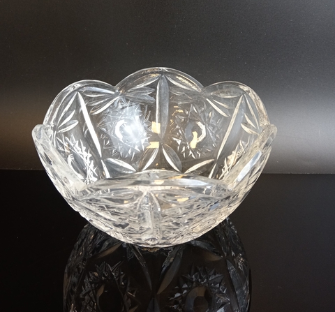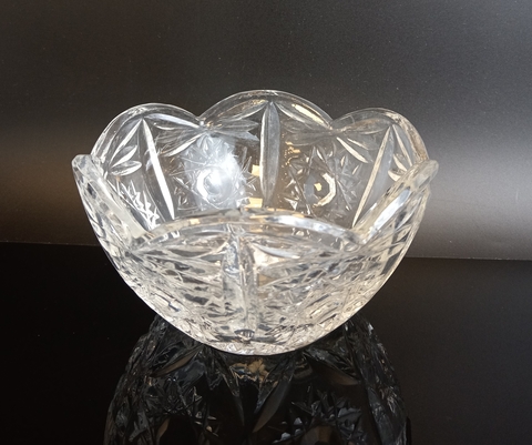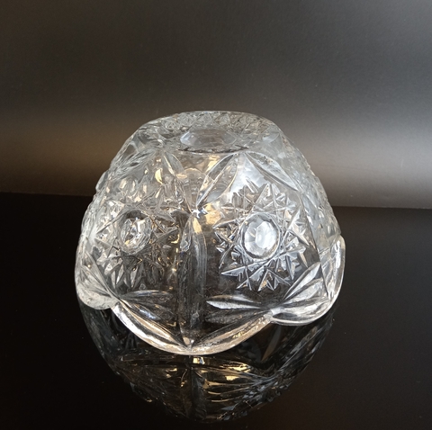 Салатник хрустальный в форме бутона цветка с рельефным декором, алмазная грань, винтаж СССР 1970-1990 гг. Высота - 7.5 см. Присутствуют следы использования - состояние на фото
