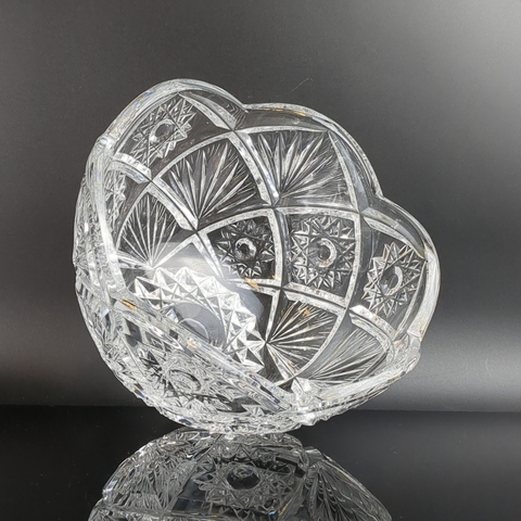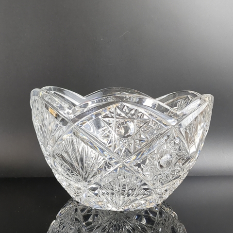 Салатник хрустальный винтажный , алмазная грань, советский хрусталь СССР 1970-1990 гг. Высота - 11.5, диаметр- 18.5 см. Присутствуют следы использования- состояние на фото