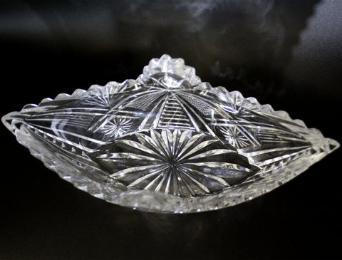 Салатник (конфетница) Ладья с цветочным декором, Хрусталь СССР, 1970-1990 гг.