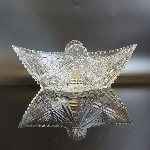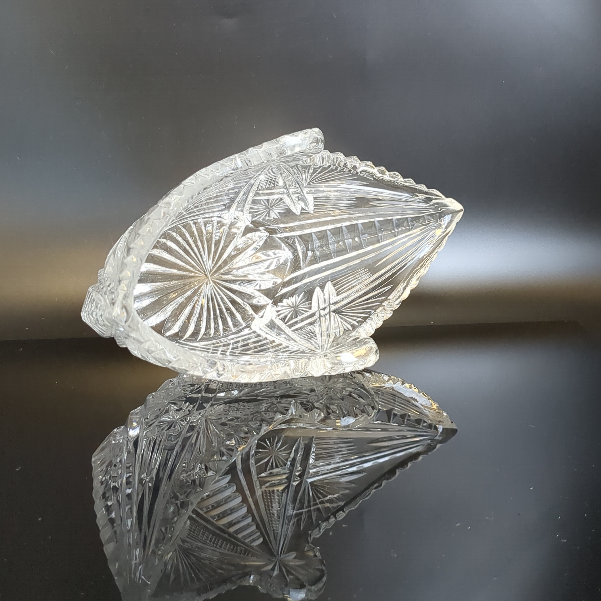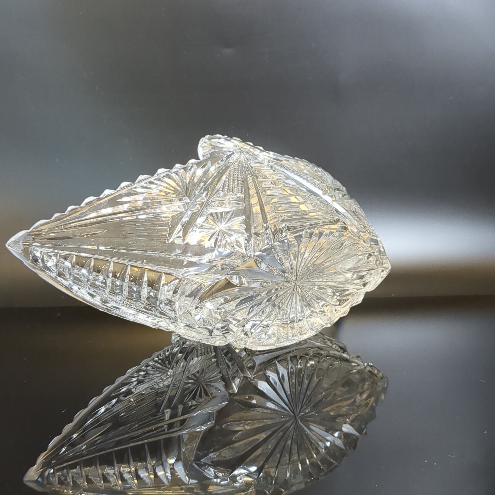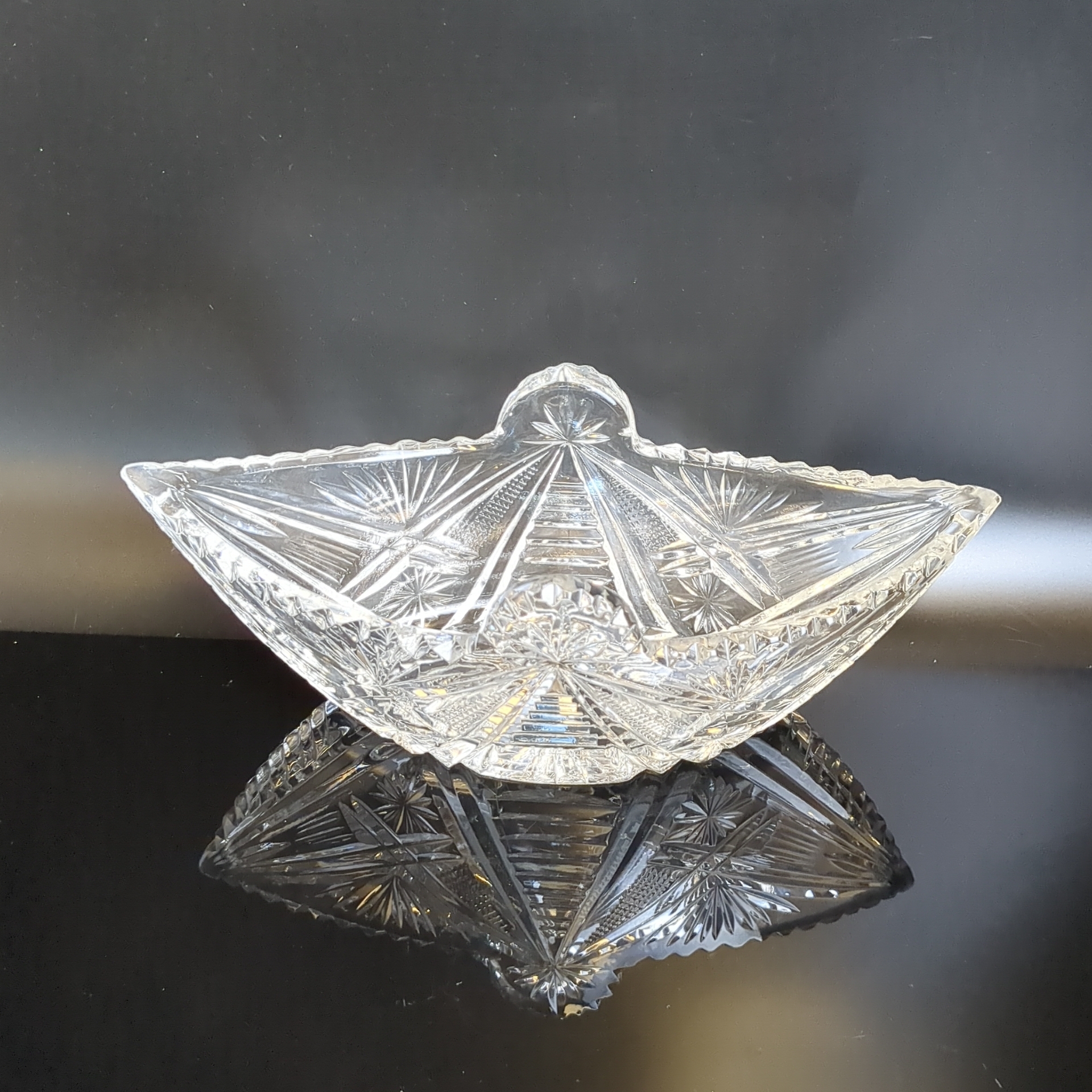 Салатник в форме Ладьи хрустальный, алмазная грань, геометрический орнамент, винтаж СССР 1970-1990 гг. Длина - 23.5 см, высота - 10 см. Состояние на фото