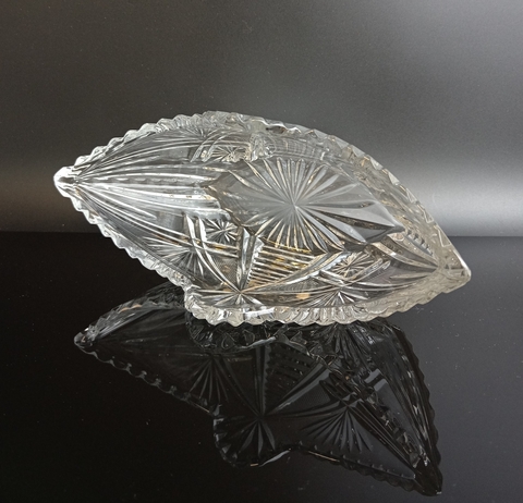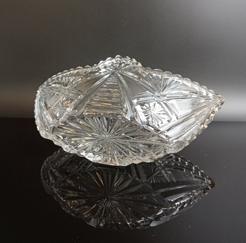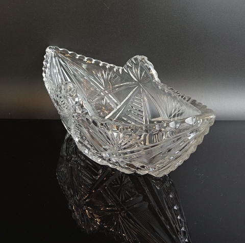 Салатник в форме Ладьи хрустальный, алмазная грань, геометрический узор, винтаж СССР 1970-1990 гг. Высота - 9 см. Присутствуют следы использования - состояние на фото.