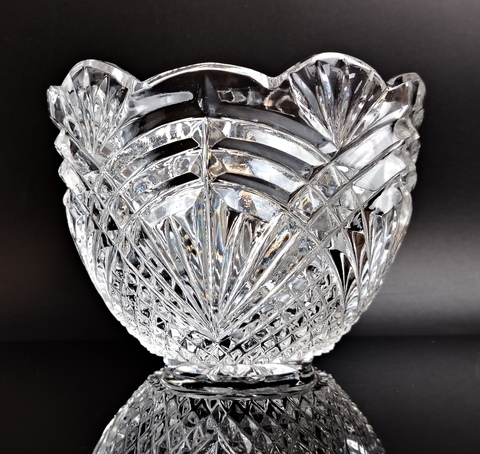 Салатник, ваза для конфет, хрусталь, алмазная грань, геометрический орнамент, винтаж СССР 1970-1990 гг. Высота - 11 см, диаметр - 13 см. Присутствуют следы использования- состояние на фото