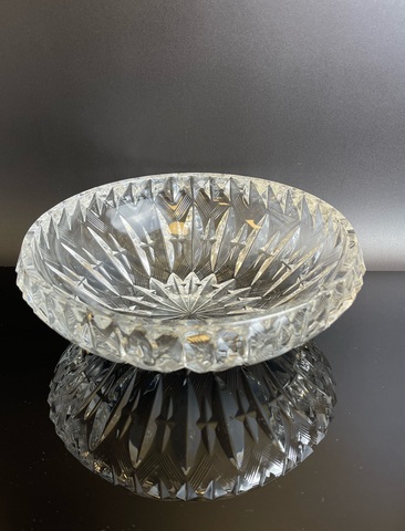 Салатник винтажный хрустальный большой, алмазная грань, геометрический узор, времен СССР 1970-1990 гг. Высота - 7.5 см, диаметр - 21.5 см. Присутствуют следы использования - состояние на фото