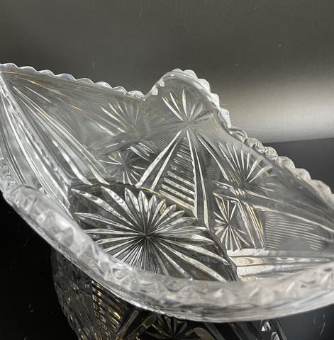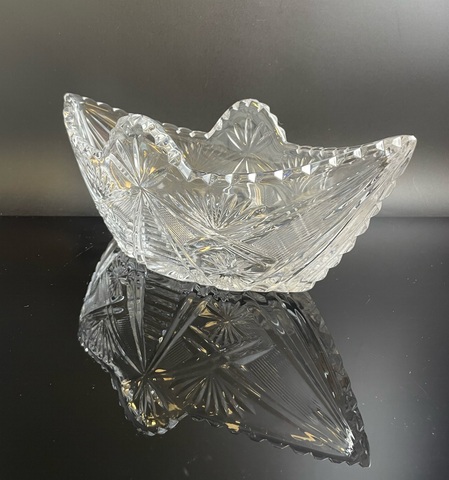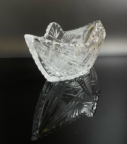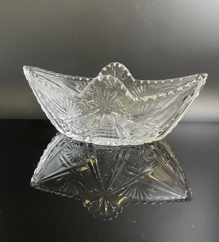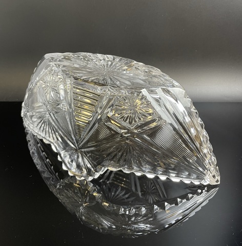 Салатница, конфетница хрустальная "Ладья" с красивым декором, алмазная грань, винтаж СССР 1970-1990 гг. Присутствуют следы использования- состояние на фото