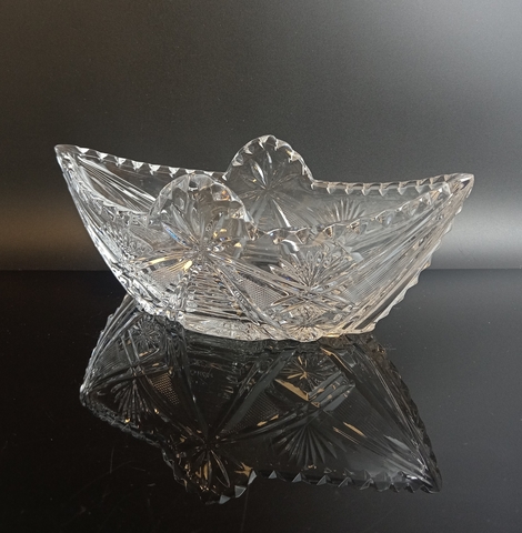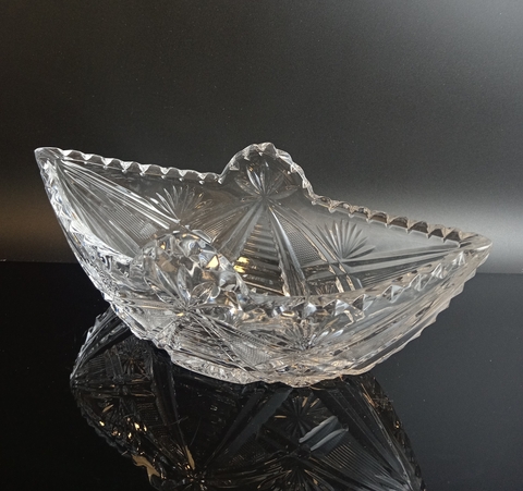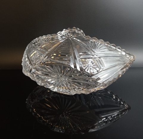 Салатница, конфетница хрустальная Ладья с красивым декором, винтаж СССР 1970-1990 гг. Длина - 23.5 см, высота - 8.5 см. Ваза хрустальная для сервировки стола, алмазная грань, геометрический орнамент, винтаж.