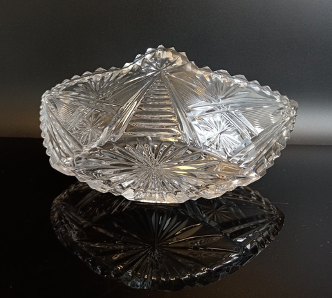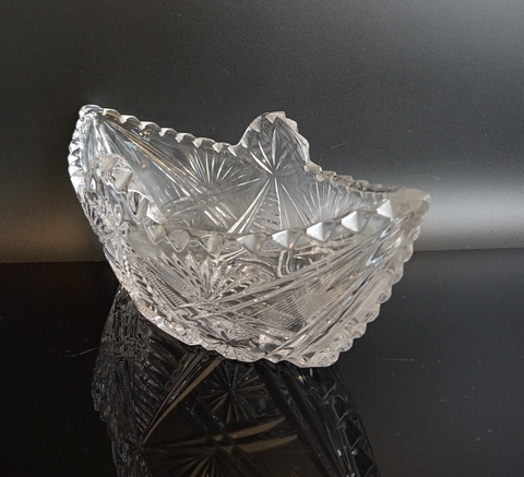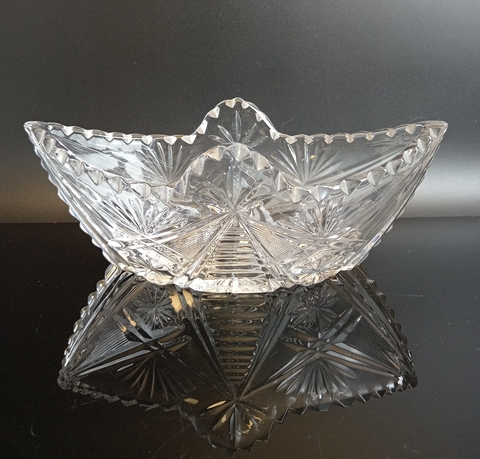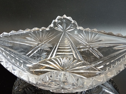 Салатница, конфетница хрустальная "Ладья" с красивым декором, винтаж СССР 1970-1990 гг. Высота - 9 см, длина - 23.5 см. Присутствуют следы использования - состояние на фото