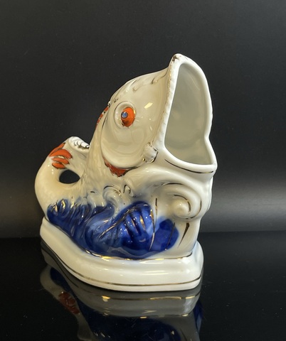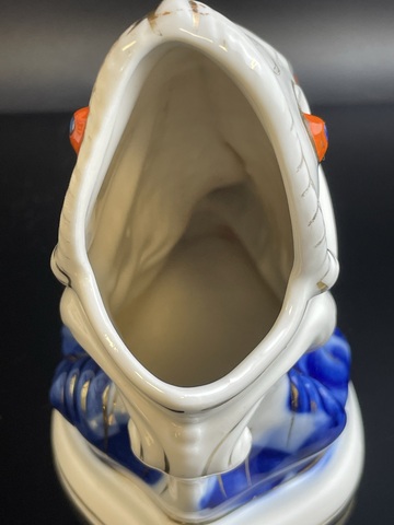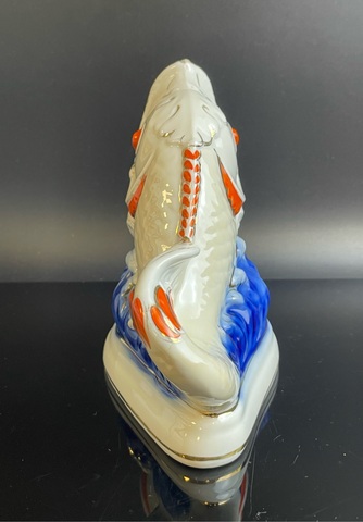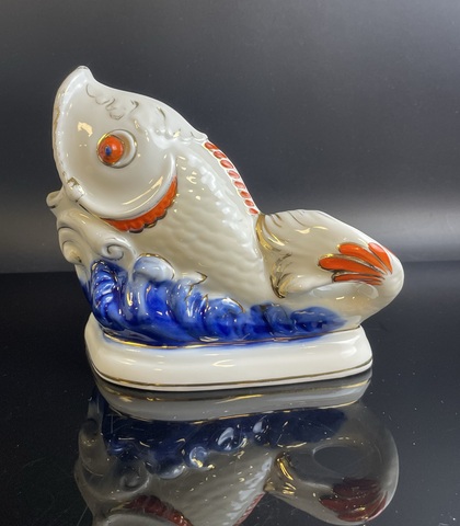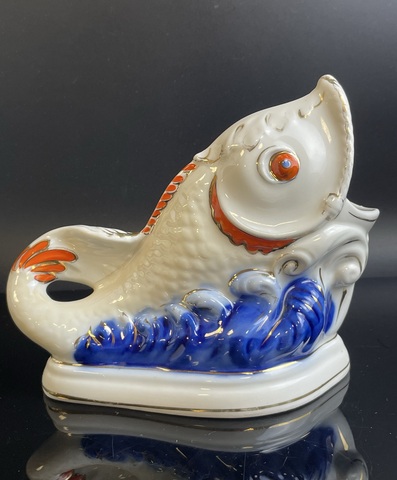 Фарфоровая статуэтка - Салфетница "Рыба", фарфор, роспись, золочение, Коростенский фарфоровый завод (КФЗ), СССР, 1960-1990 гг. Высота 14 см