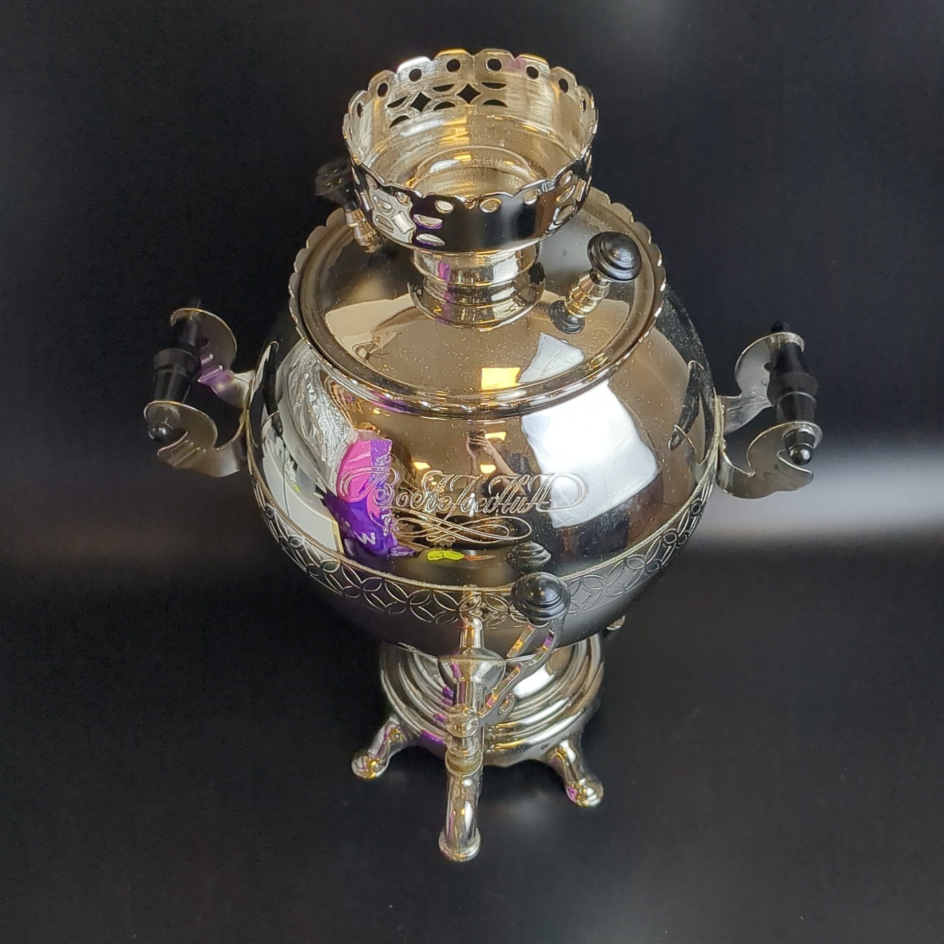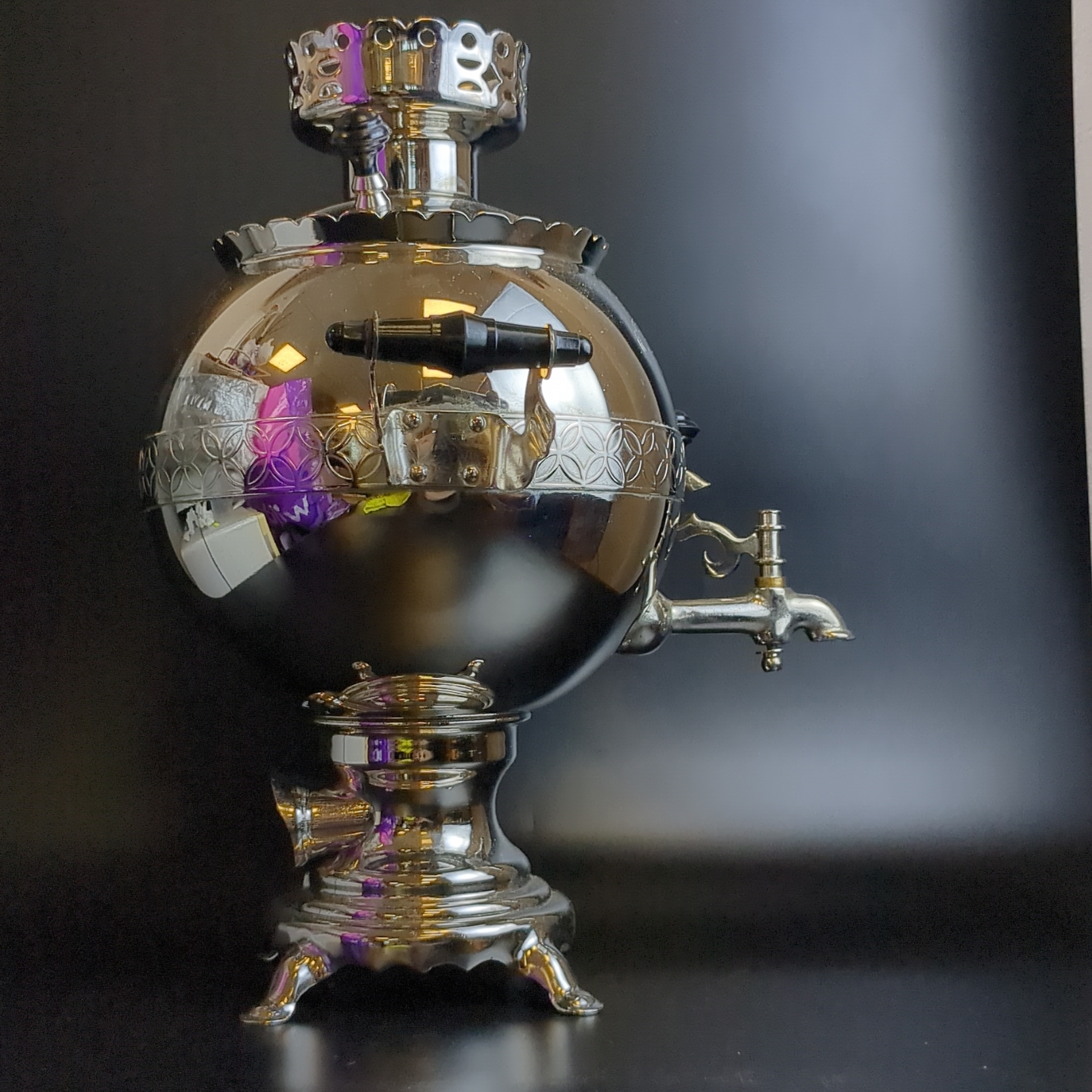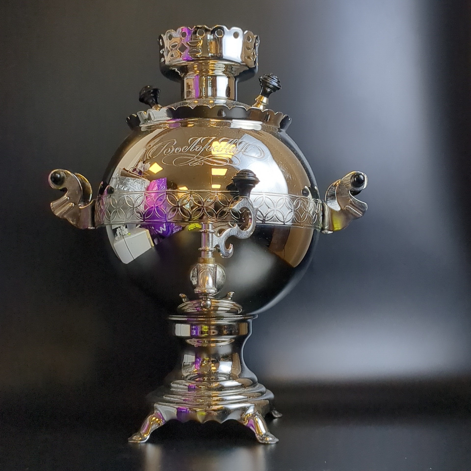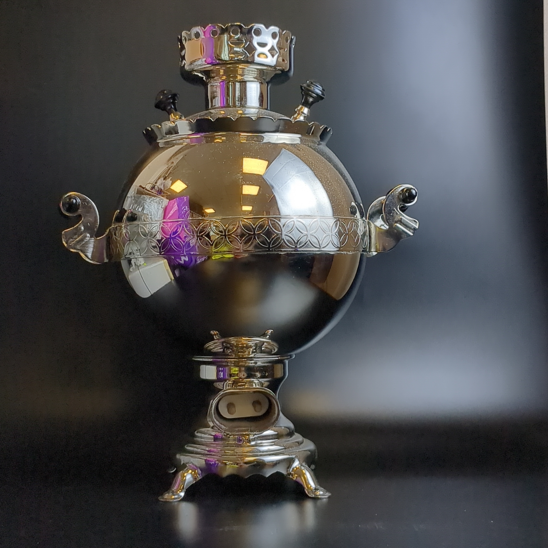 Самовар электрический. Шар зеркальный. 3 литра. "Волжанин". Новый в коробке с хранения. 1991 год. С 1991 года самовар хранился в родной коробке и не использовался. Редкая форма электросамовара в виде шара с зеркальной поверхностью придаст теплоту и уют вашему застолью. В комплект входит родная коробка, руководство по эксплуатации, шнур питания.