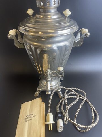 Самовар электрический . СССР. Высота 36 см. Рабочий. Есть следы использования. Состояние на фото. Шнур питания внутри в комплекте. с паспортом / документом