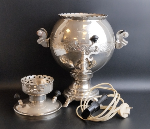 Антуражный советский электрический самовар — атмосферная вещь для чаепитий и яркий предмет интерьера в винтажном стиле, самовар в виде шара.