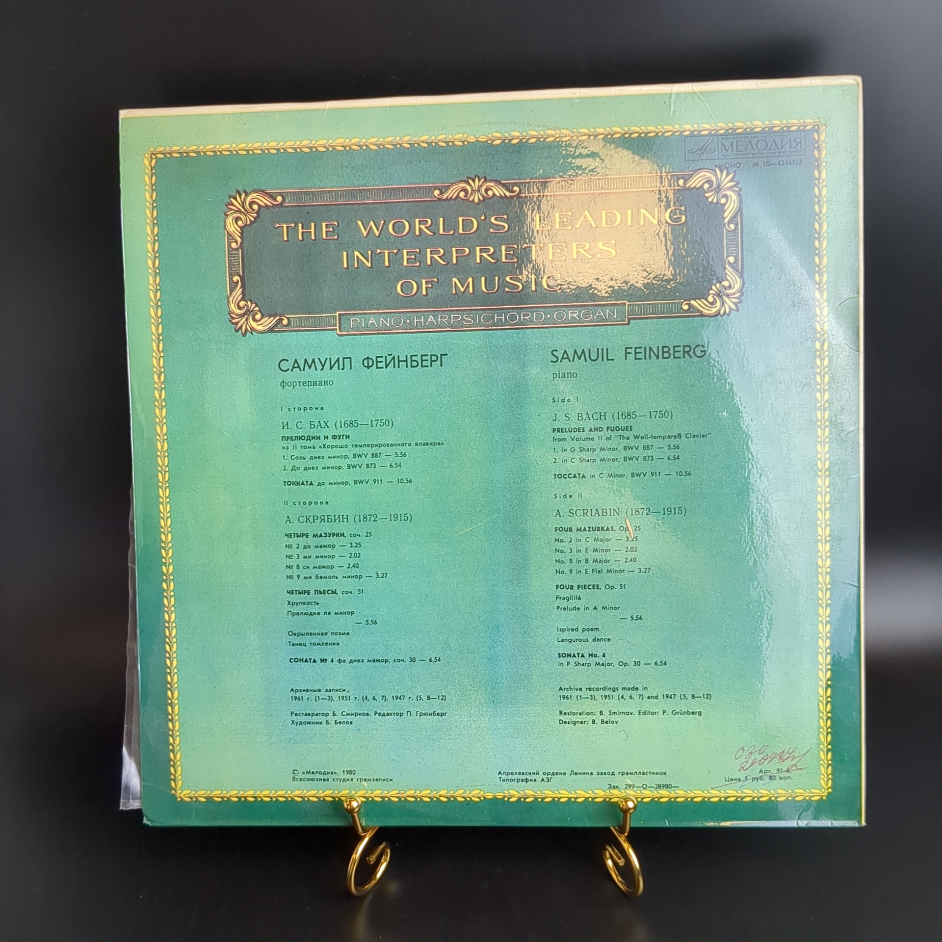 Самуил Фейнберг фортепиано виниловая пластинка 12 дюймов И.С. Бах / А. Скрябин Из сокровищницы мирового исполнительного искусства, LP классика, винтаж СССР Мелодия 1980 год. Классическая музыка на виниле. Конверт: EX Диск: EX