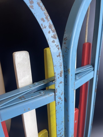 Санки складные детские времен СССР трансформер со спинкой складные железные с деревом, винтаж.