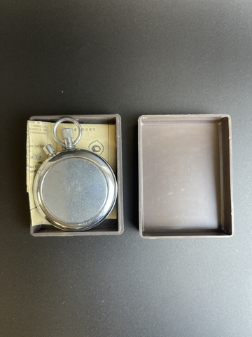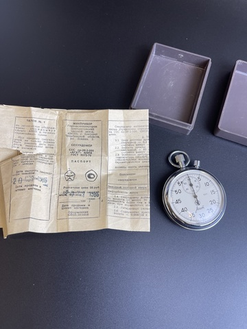 Секундомер "Агат" Златоустовский завод. Сделано в СССР. Рабочий, 1980-е г. в футляре с паспортом