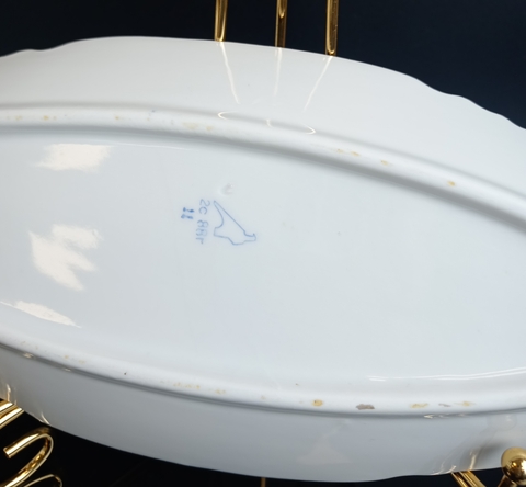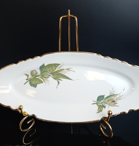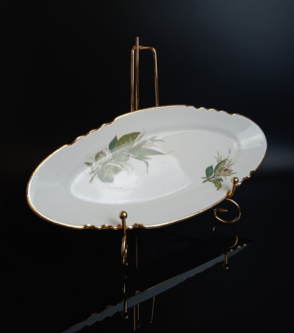 Селедочница фарфор клеймо Дулево, цветы, позолота, "Пионы", рельеф, винтаж СССР 1988 год. Длина - 30 см. Присутствуют следы использования - состояние на фото