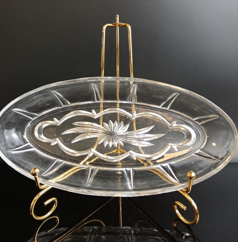 Селедочница старое стекло с узором, времён СССР 1950-е гг. Высота - 3.5 см, длина - 25 см. Присутствуют следы использования - состояние на фото