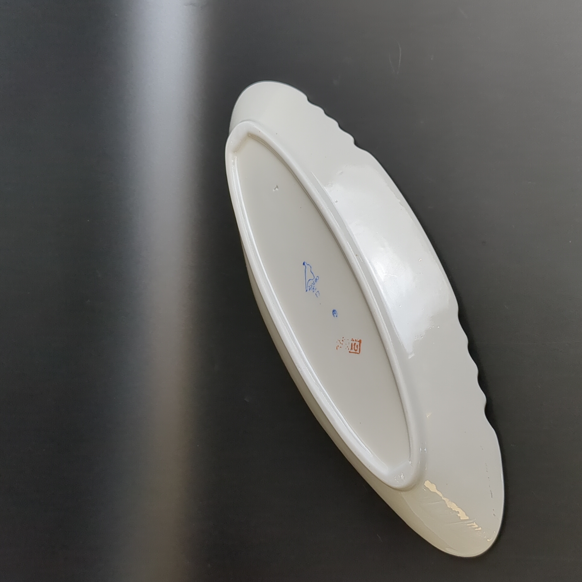 Фарфоровая селёдочница с клеймом Дулево ФЗ из периода СССР: винтажная роскошь в вашем доме! Высота - 2.5 см, длина - 29.5 см, ширина -12.3 см. Состояние на фото, присутствуют следы бытования.