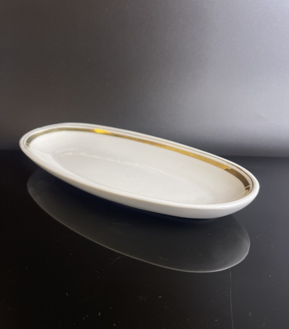 Селёдочница фарфоровая клеймо Пролетарий ФЗ, золочение, винтажная, СССР 1957-1967 гг. Длина - 25 см, ширина - 12 см. Присутствуют незначительные следы использования - состояние на фото
