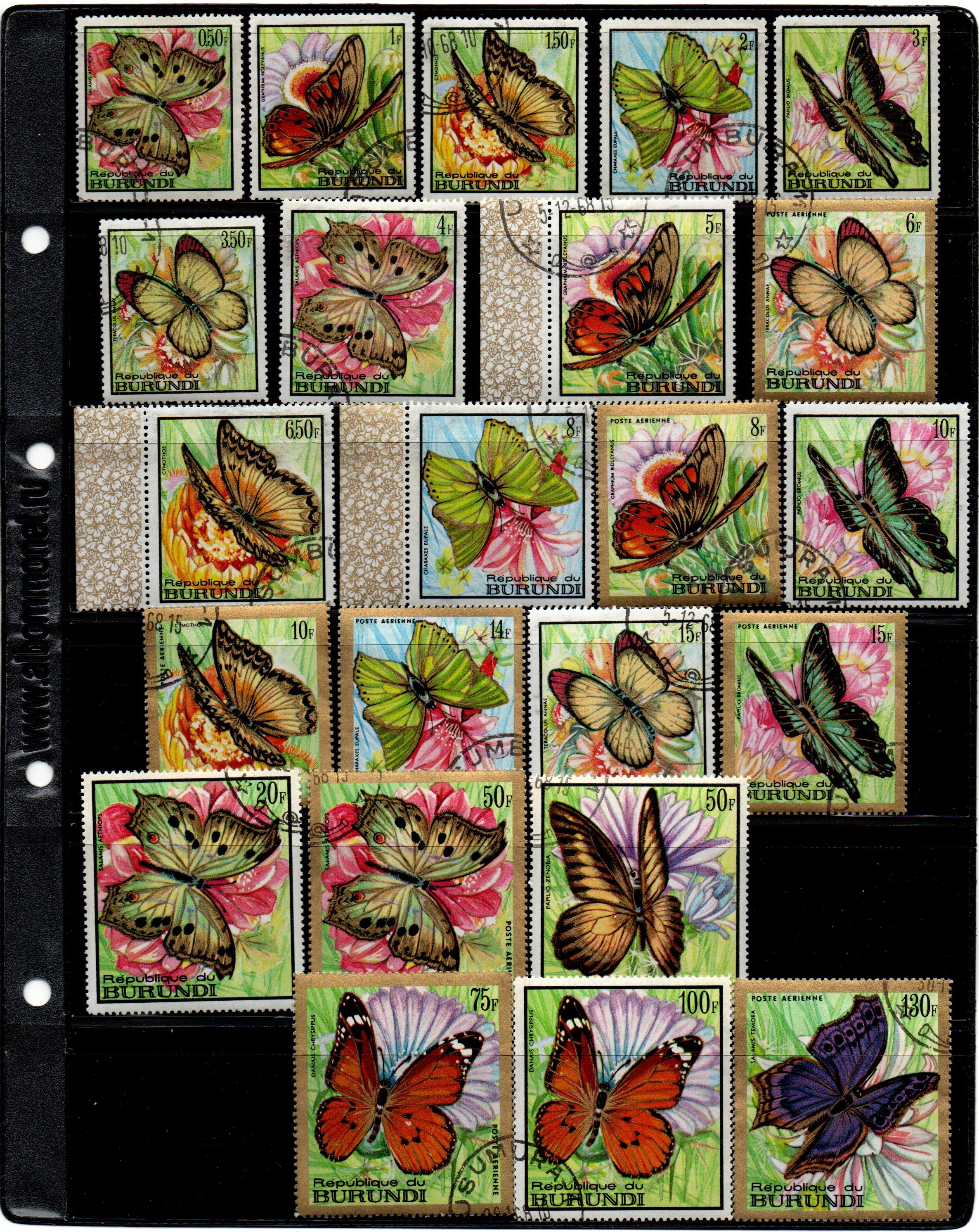 Серия марок - Бурунди - Бабочки - 1968 год - 23 штуки - гашеные. Односторонний лист формата Оптима входит в лот.
