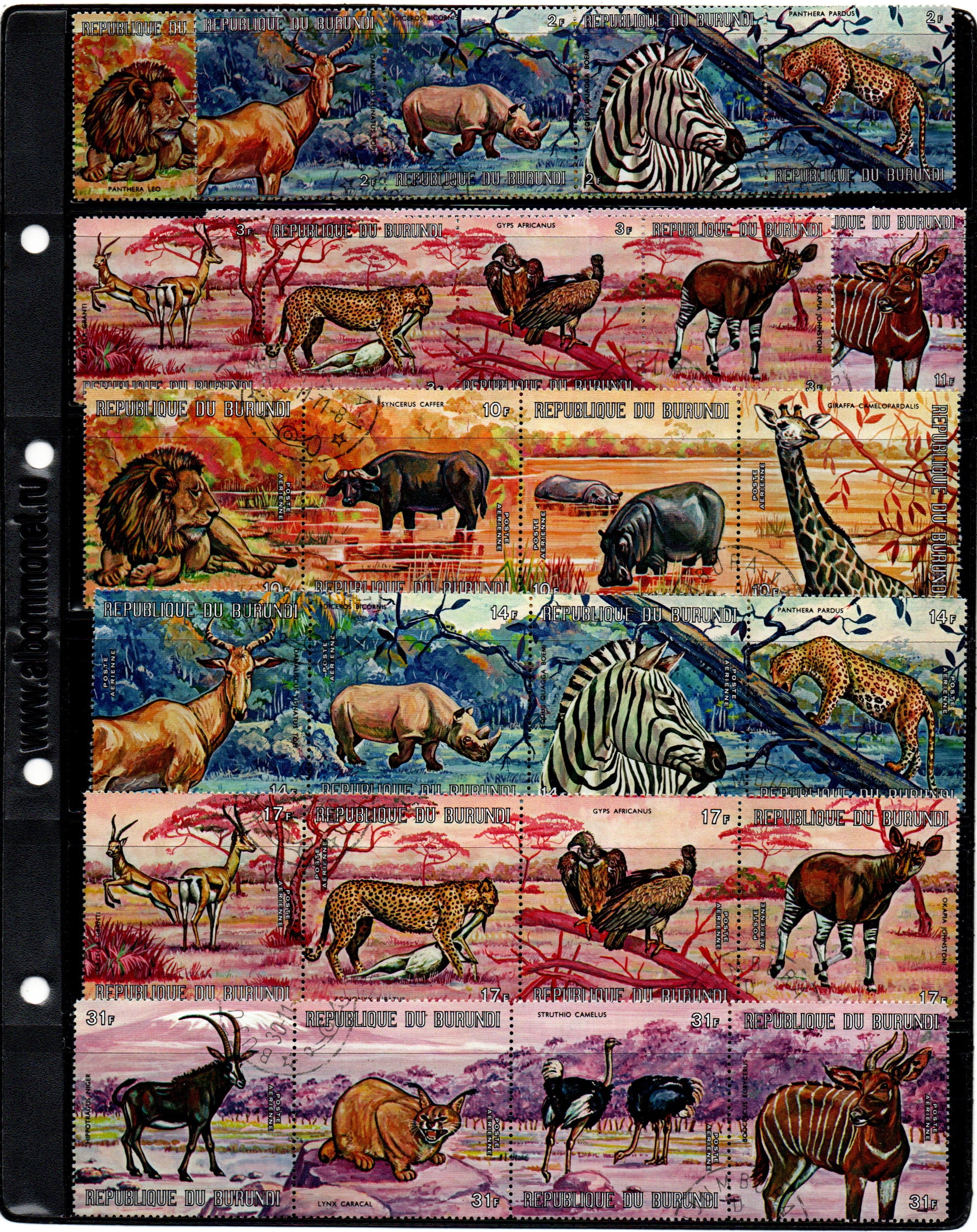 Серия марок - Бурунди - Животные - 1971 год - 32 штуки - гашеные. Односторонний лист формата Оптима входит в лот.
