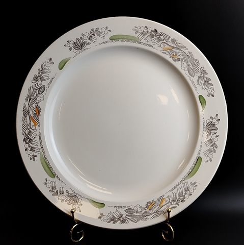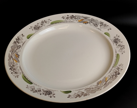 Блюдо для сервировки (поднос) фаянс, птицы, цветочный декор, ЗиК, Конаково, диаметр - 34.8 см, винтаж СССР 1974-1991 гг. Высота - 3.6 см. Состояние на фото, присутствуют следы бытования