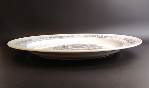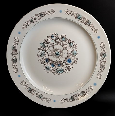 Блюдо для сервировки (поднос) фаянс, цветочный декор, аэрография, ЗиК, Конаково, диаметр - 34.5 см, винтаж СССР 1974-1991 гг. Высота - 3.5 см. Состояние на фото, присутствуют следы бытования