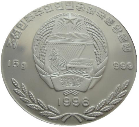 Северная Корея 250 вон 1996 Корабль парусник Гонконг 99 лет СЕРЕБРО