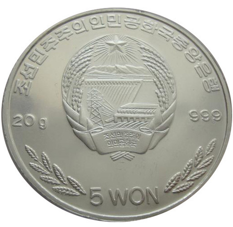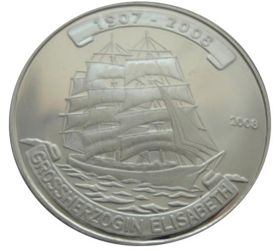 Северная Корея 5 вон 2008 Корабль парусник Grossherzogin Elisabeth Герцогиня Елизавета СЕРЕБРО