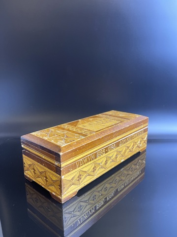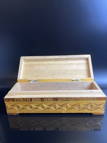 Шкатулка Деревянная Уржум 1886-1986 г. дом Костриковых(С.М. Кирова), винтаж СССР. Длина- 21.5 см, ширина - 8.5 см, высота - 6.5 см.