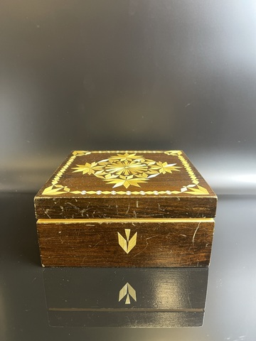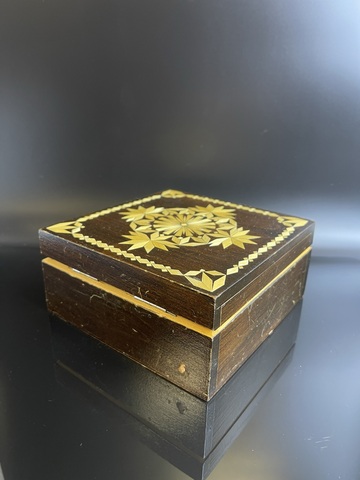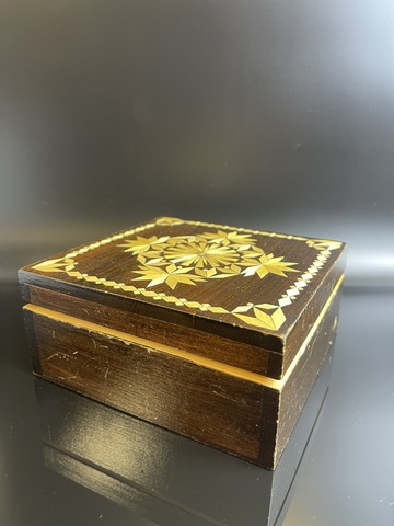 Шкатулка деревянная винтажная с узорами СССР 1960-1990 гг. Длина -15 см, ширина- 15 см, высота- 7 см.