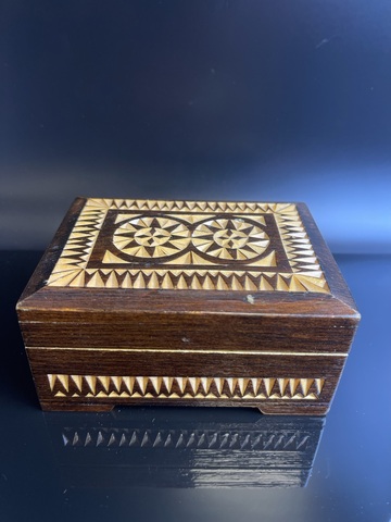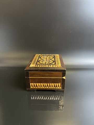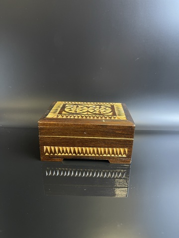 Шкатулка винтажная деревянная с резьбой СССР 1960-1990 гг. Длина - 12 см, ширина- 9 см, высота - 5 см.