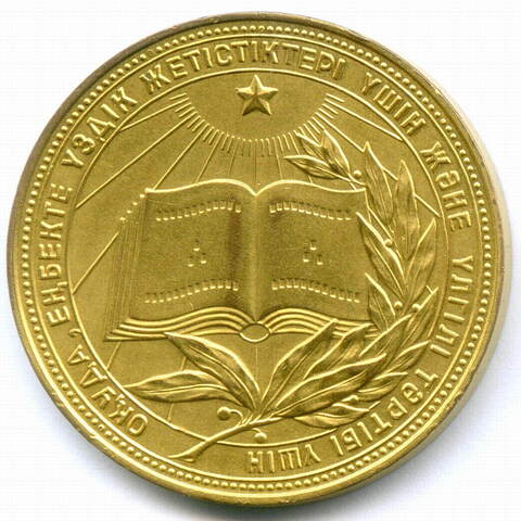 Школьная медаль Казахской ССР 1960 год (с надписью на аверсе на русском языке). Томпак VF-XF
