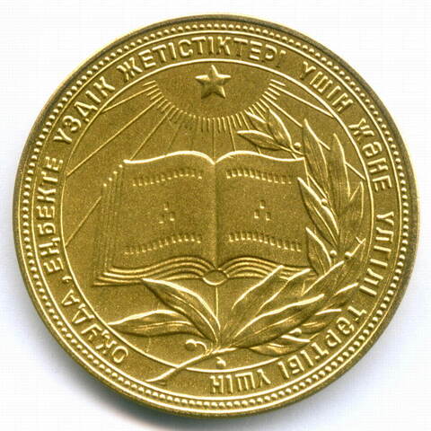 Школьная медаль Казахской ССР 1985 год (без надписи на аверсе на русском языке). Томпак UNC