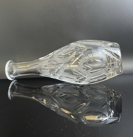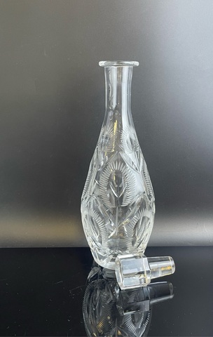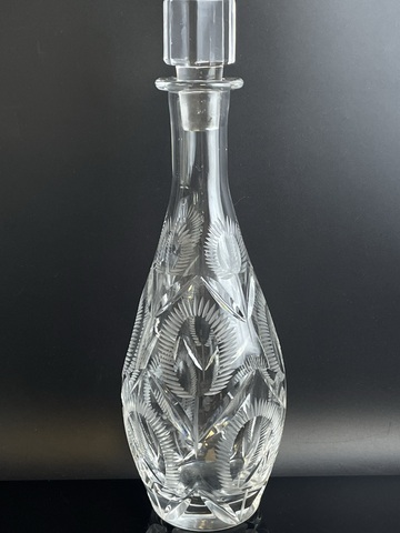 Штоф с пробкой изящный хрустальный, алмазная грань, резной узор, высота - 31 см, винтаж СССР 1960-1980 гг. Присутствуют следы использования- состояние на фото