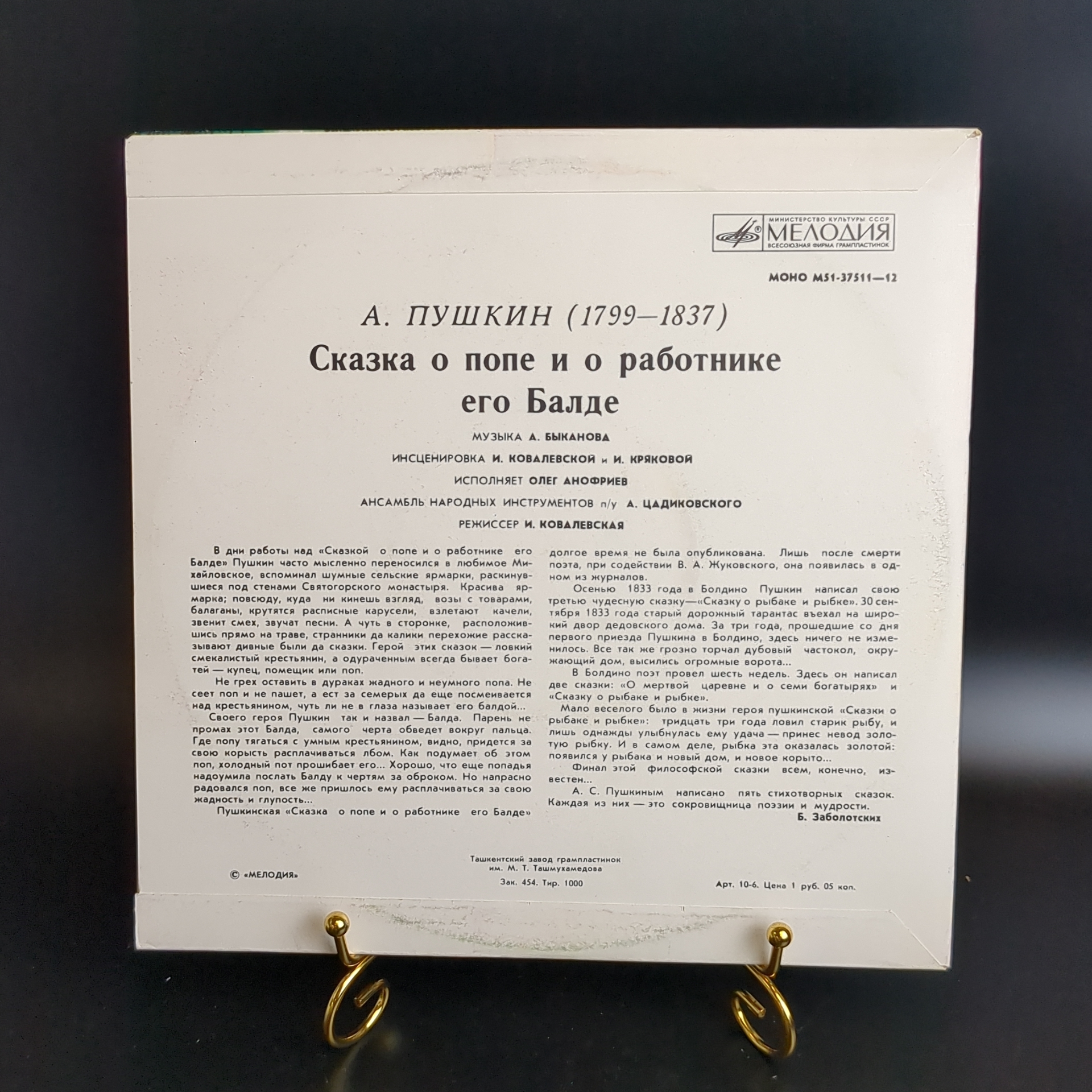 Сказка о Попе и о работнике его Балде - А.С. Пушкин - Виниловая пластинка 10 дюймов. Мелодия СССР