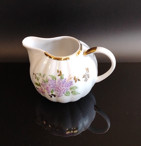 Сливочник фарфоровый из сервиза "Сирень", Дулево ФЗ, роспись, золочение, винтаж СССР 1966 год. Высота - 9 см. Состояние на фото