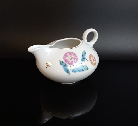 Сливочник фарфоровый клеймо Дулево ФЗ, роспись цветы, золочение, винтаж СССР 1966 год. Высота - 8,5 см. Присутствуют следы использования - состояние на фото