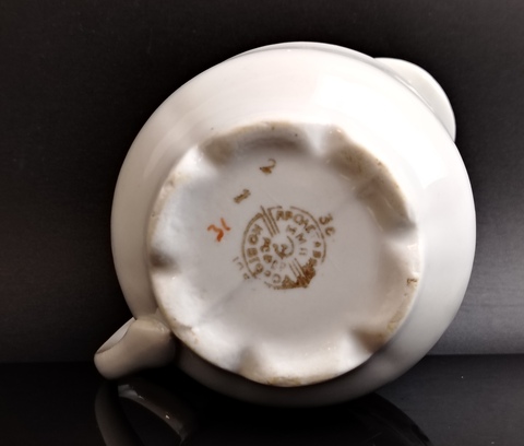 Сливочник, молочник фарфоровый клеймо Пролетарий РСФСР Новогород, роспись цветы, винтаж СССР 1951-1952 гг. Состояние на фото