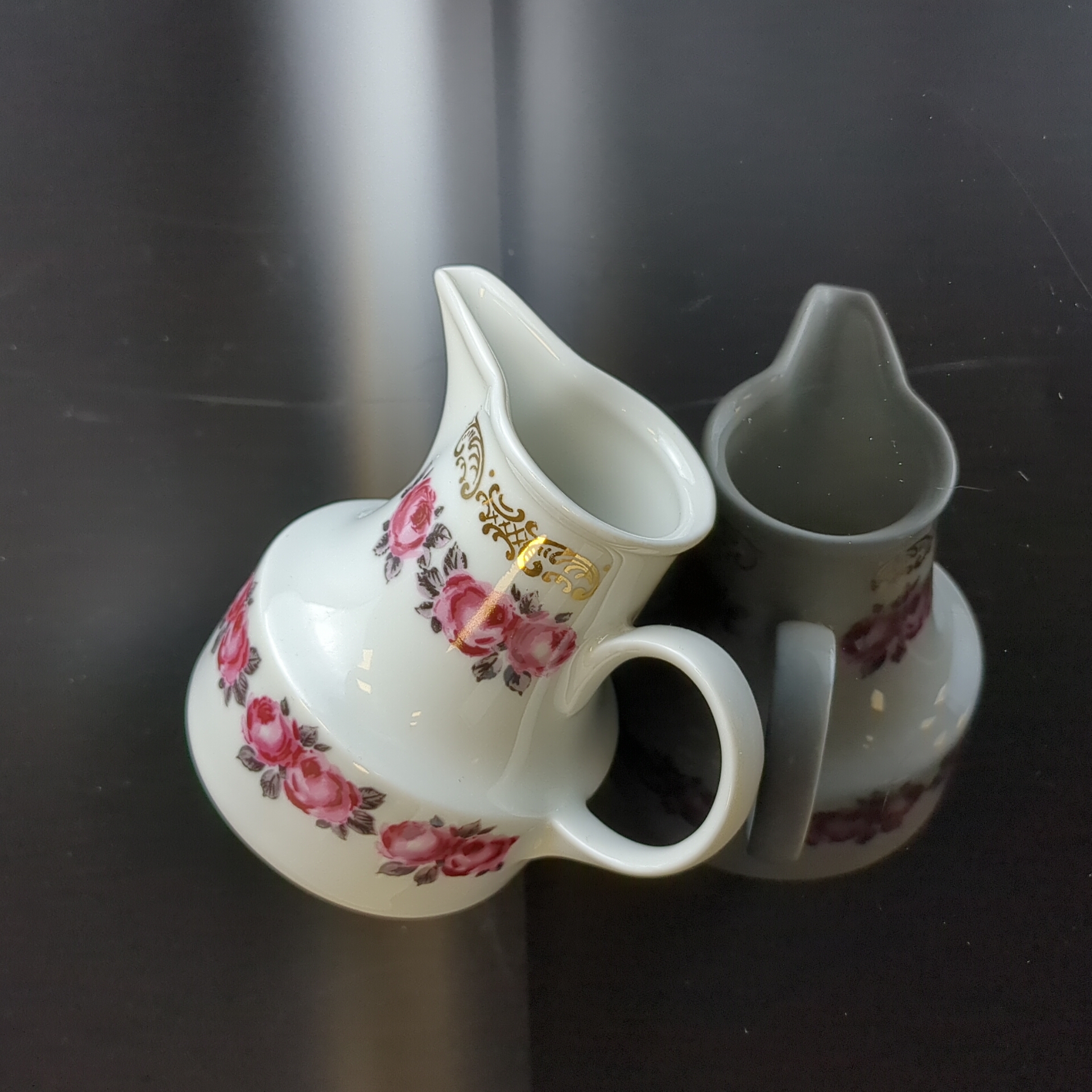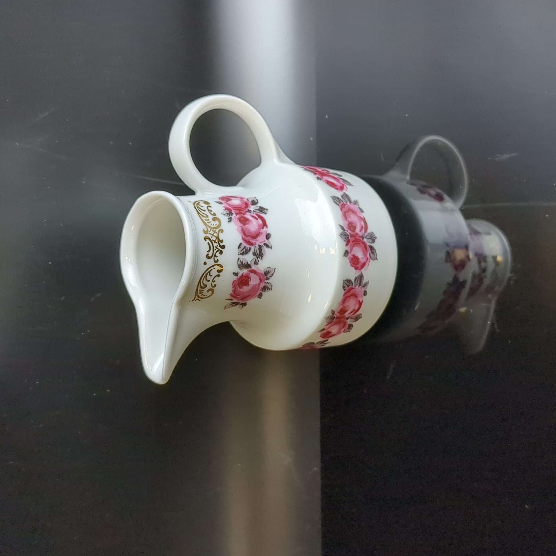 Сливочник фарфоровый, клеймо Graf Von Henneberg Porzellan, 1777 Jlmenau, Германия, роспись цветы, золочение, винтаж 1973-1977 гг. Высота - 8.5 см. Состояние на фото
