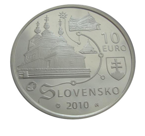 Словакия 10 евро 2010 Деревянные церкви в Карпатах ПРУФ СЕРЕБРО