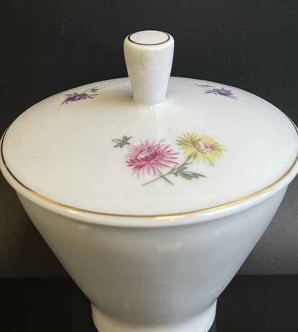 Солонка фарфоровая роспись цветы, позолота, из сервиза Астры, ГДР Freigerber Porzellan, винтаж времён СССР 1970-1990 гг