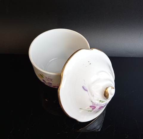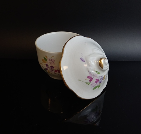 Солонка фарфоровая с крышкой, цветы, позолота, винтаж СССР 1991 год. Высота - 8 см, диаметр - 7 см. Присутствуют следы использования - состояние на фото