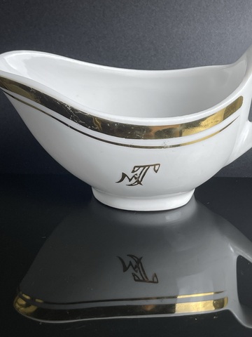 Соусник фарфоровый клеймо Дулево МТ, Министерство Торговли, люкс, позолота, винтаж СССР 1968-1991 гг. Местами стерта позолота, присутствуют следы использования - состояние на фото.