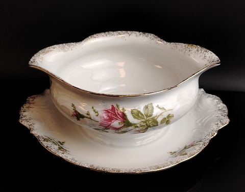 Фарфоровый соусник с блюдцем из периода СССР: винтажная роскошь в вашем доме! Высота - 8 см, длина - 19 см. Состояние на фото.