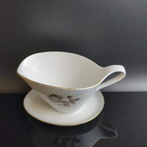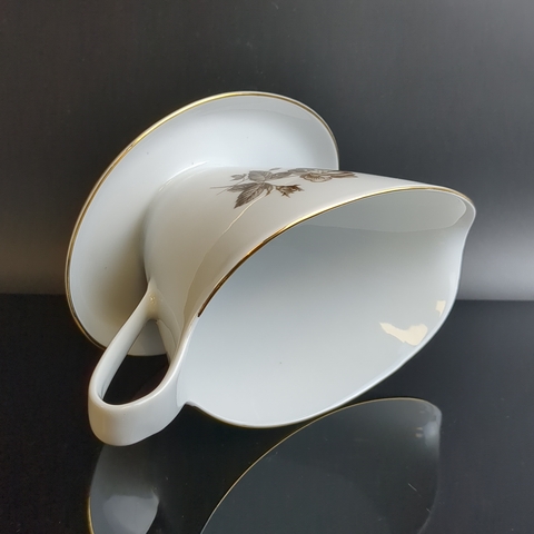 Фарфоровый соусник ГДР из периода СССР: винтажная роскошь в вашем доме! Высота - 10.5 см, длина - 20 см. Состояние на фото, присутствуют следы бытования.