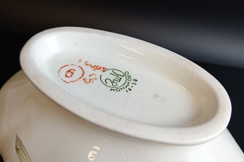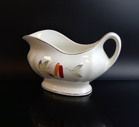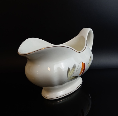 Соусник фаянс роспись цветы, позолота, ЗИК ФЗ, старинный винтаж 1952-1958 гг. Высота - 11.5 см, длина - 18.5 см. Присутствуют следы использования- состояние на фото
