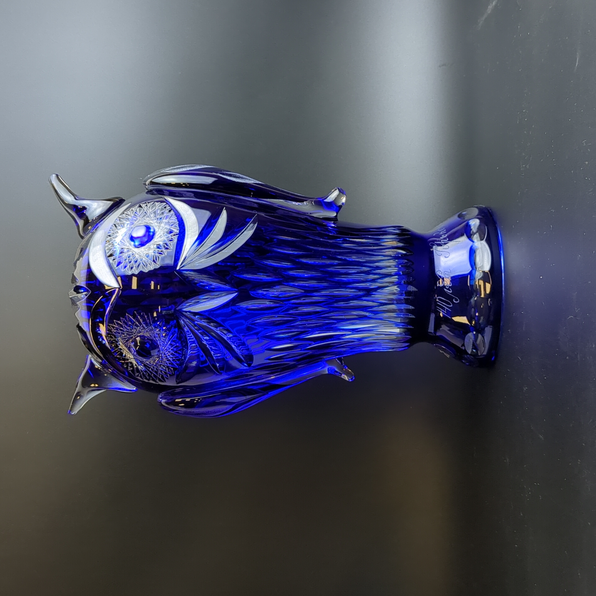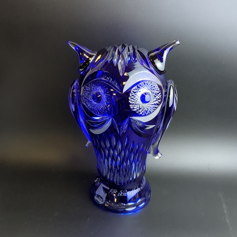 Сова хрустальная. Высота 29 см. Цветной хрусталь. Алмазная грань.
