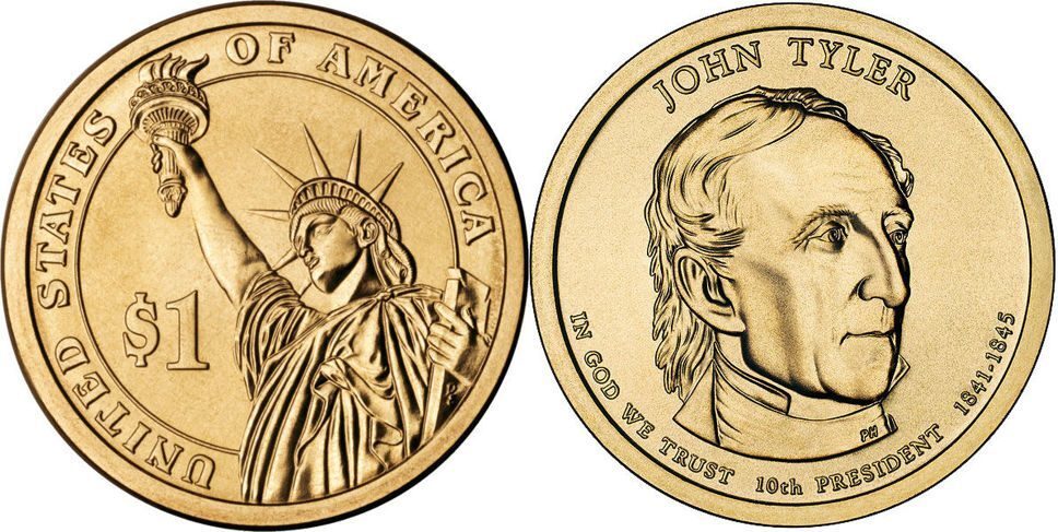 США. 1 доллар. Президенты. №10. 2009. John Tyler / Джон Тайлер. D. UNC