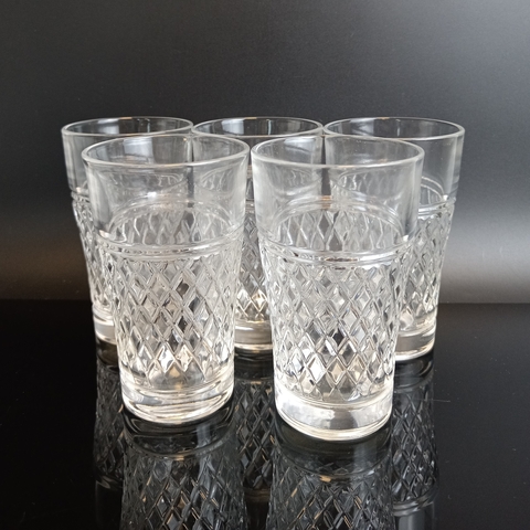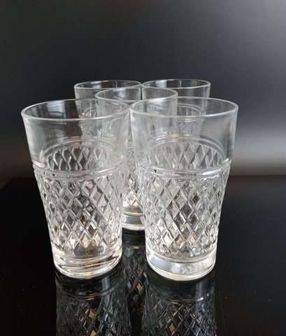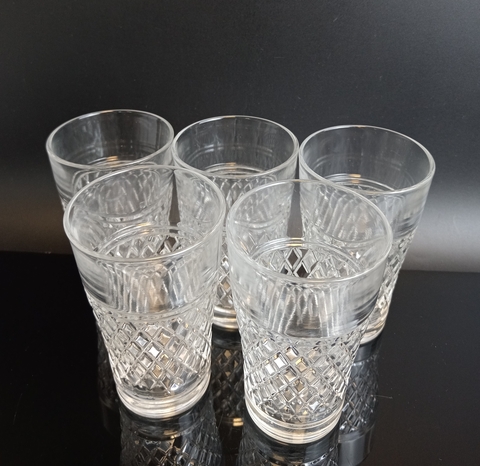 Стаканы хрустальные набор из 5 штук, геометрический орнамент, 200 мл., высота -11.5 см, винтаж СССР 1970-1990 гг. Присутствуют следы использования - состояние на фото