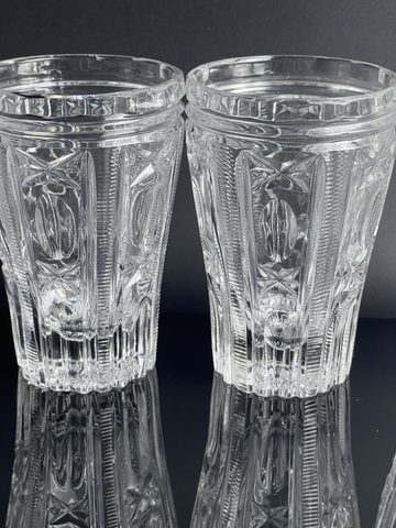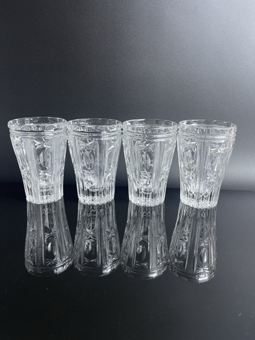 Стаканы, стопки хрустальные набор из 4 штук, алмазная грань, винтаж СССР 1970-1990 гг. Высота- 9.7 см. Объём - 130 мл. Сервантное хранение, незначительные следы использования - состояние на фото